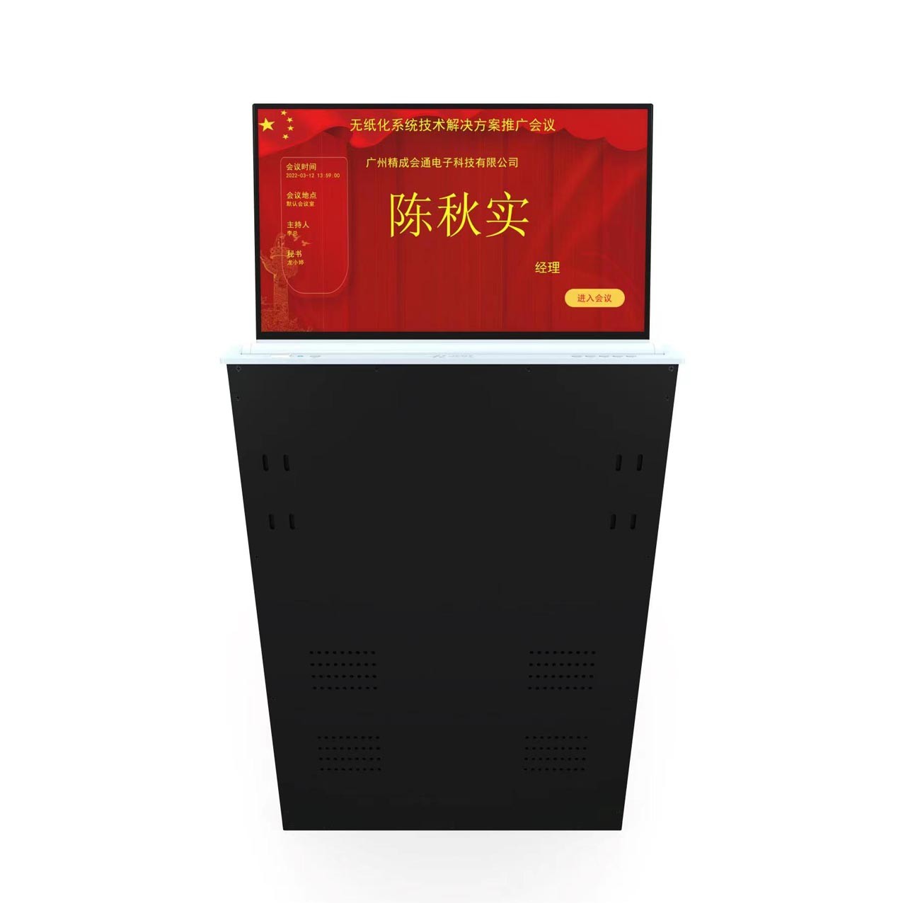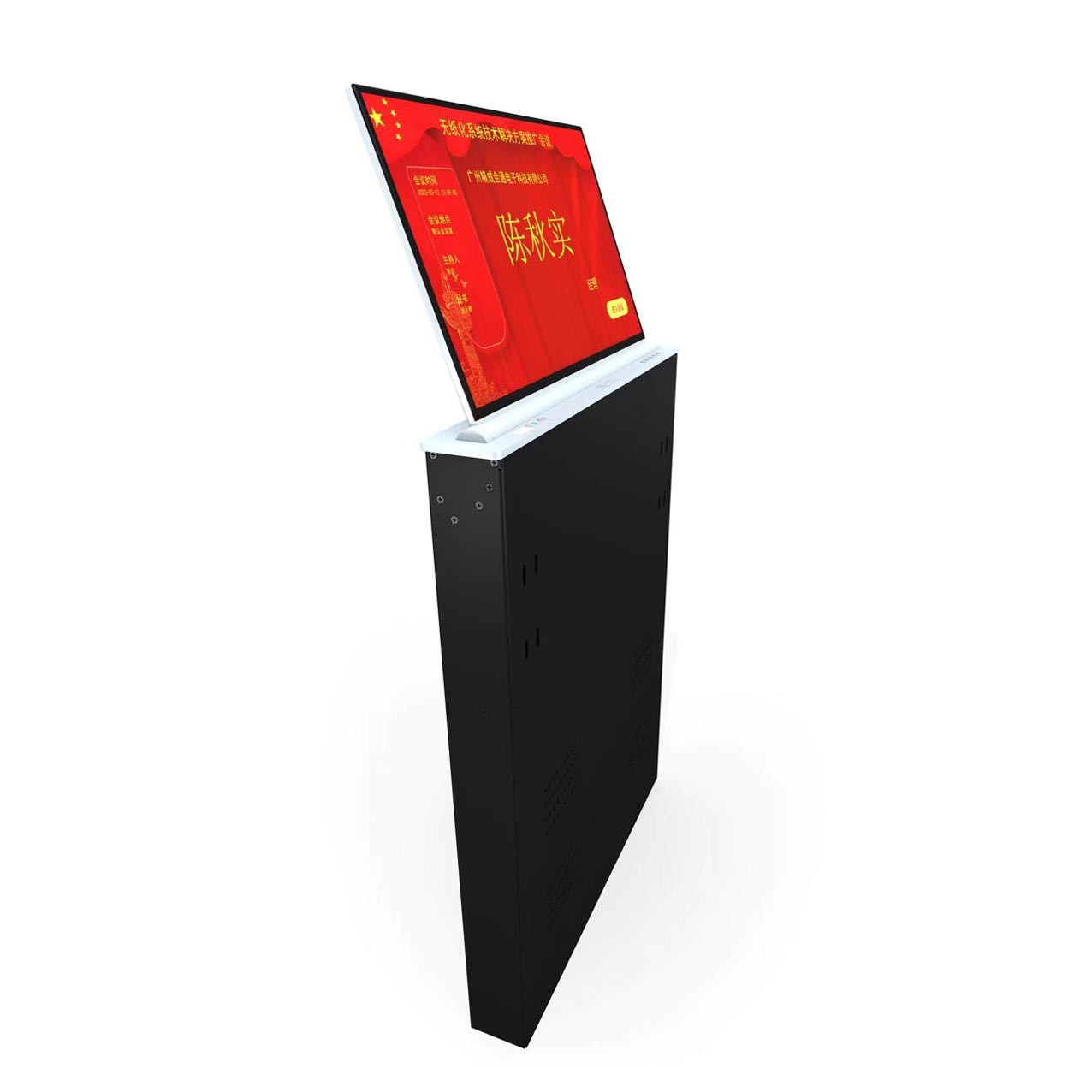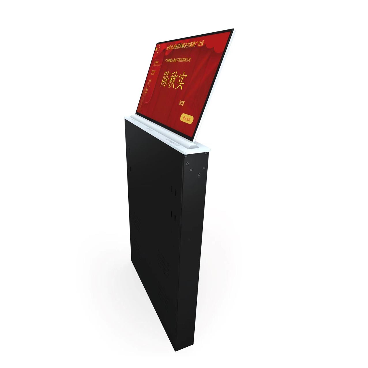 ★7、屏幕上升到位自动仰角度30度,支持0-30后电动调节角度,保证显示器人体工程学更佳观看视角与触控角度;