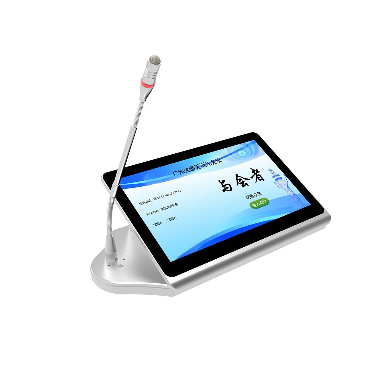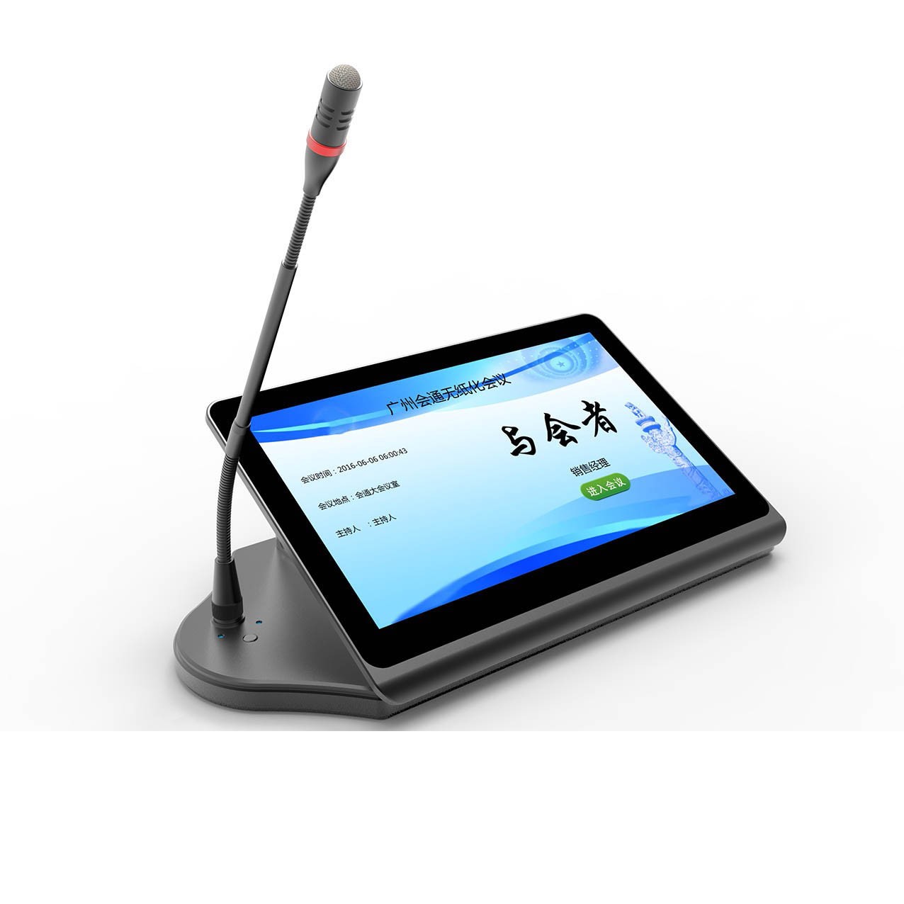 ☆5、具有铭牌显示功能、会议标语功能、会议信息功能、会议议程功能、会议议题功能:按会议进程及权限显示后台推送的会议议题,议题内文件支持word\ppt\excel等办公文件、会议签到、投票表决、交互式电子白板、信息交流功能、会议呼叫服务、接收后台软件推送的通知信息等会议功能。